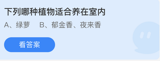 2022年4月22日我们可以看到蚂蚁庄园内的庄园小课堂,给用户们准备的题目是“下列哪种植物适合养在室内”、“小鸡宝宝考考你哪种荒漠植物可以四季常绿”,我们若是回答正确即可为小鸡赢得饲料奖励呀,那么今日答案是什么呢,那就是“绿萝”和“沙冬青”,打开支付宝参与答题吧。