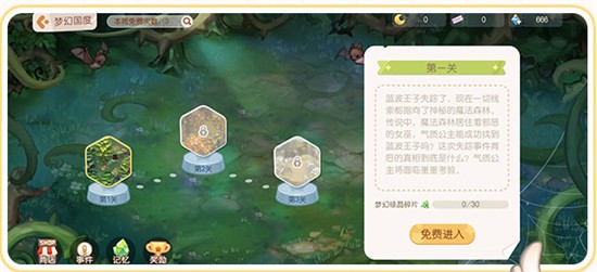 目前,梦幻国度仅开放了第一宫的故事,各位小奥比可以前往第一宫,进入那段往事,并在旅途中收集梦幻绿晶碎片。