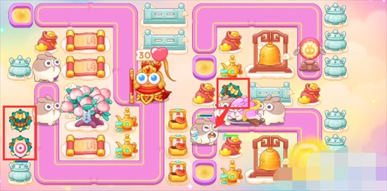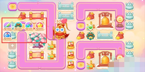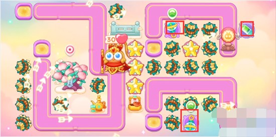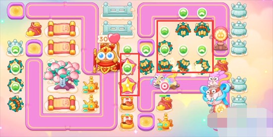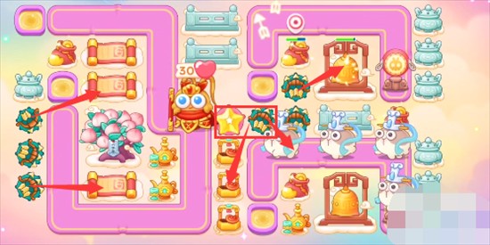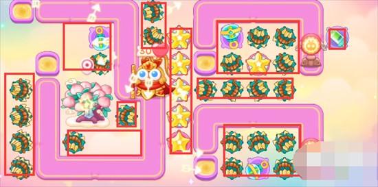 1、本关能够使用的炮塔是:毒针、多重箭、泡泡塔、星星、雷达,这一关我们主要使用多重箭打输出。