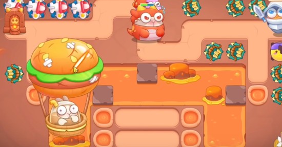 2、萝卜附近建立三个多重箭,优先清理火山,火山要快速清理,不然会爆发,清理完之后,继续清理周围障碍物。