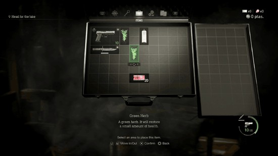 武器、弹药以及回复体力时必不可少的草药等物品,都需放入随身携带的手提箱内。