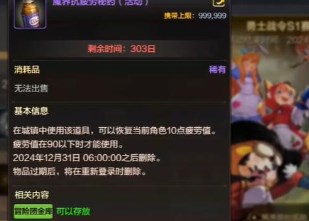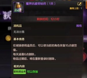 2、这个礼包可以获得魔界抗疲劳秘药一个。