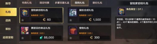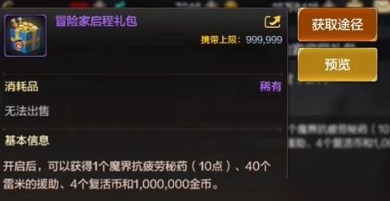 1、玩家能够在商城-礼包中获得探险家启程礼包。