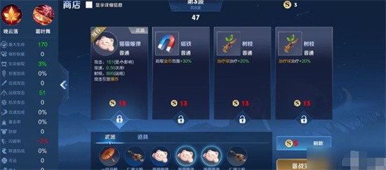 游戏中每波会经历战斗阶段和商店阶段。战斗阶段中需要面对源源不断的怪物并坚持指定时间;商店阶段中可以花费战斗中赚取的金币购买道具和武器,强化英雄战斗力。
