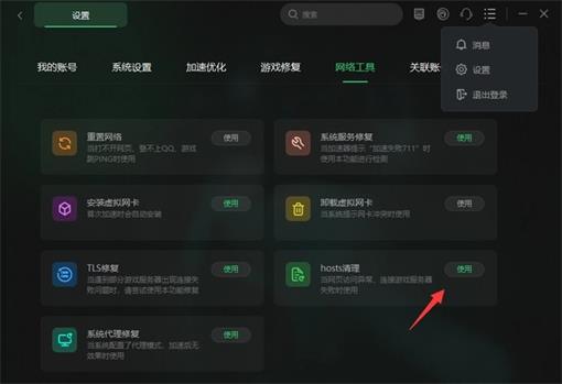 网络工具中,hosts清理功能可以帮助玩家修复网络问题。同样还是在奇游设置中,点击网络工具,选择使用hosts清理功能。等网络修复之后,就可以正常联机组对游戏了。