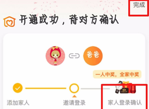 5、点击右上角的完成,让对方去登录账号点击“接受”即可