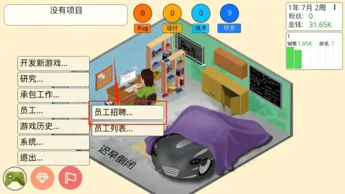 1、在“游戏开发大亨”主界面中,点击左侧的“员工”按钮。