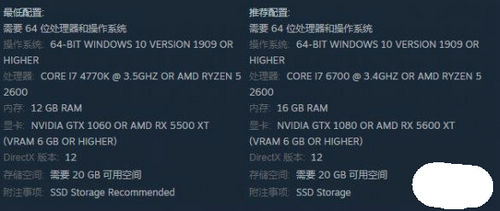 · 处理器:Core i7 4770K 3.5GHZ 或 AMD Ryzen 5 260