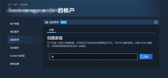 想要创建家庭的玩家,点击创建,然后设置一下名字