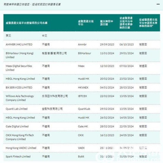 另一方面,未能符合要求而被视为「不当作获发牌」的平台,则必须在3个月以内结束所有业务。此前提交申请的OKX、Huobi、Bybit等交易所,目前其牌照申请已经撤回,全球主流的币安、Coinbase..等也未提交申请。