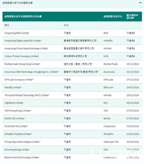 此前受加密货币交易所JPEX涉诈案影响,香港证 监会在去年9月下旬开始正式披露虚拟资产交易平台牌照申领现况的相关名单,包括持牌平台名单、已申请牌照平台、结业平台..等名单。