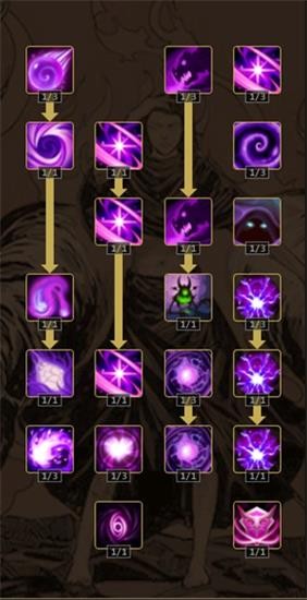 3、技能树加点如下图所示,心灵魔弹、巫术穿透、魔影召唤和冷却缩减等点一级就够。