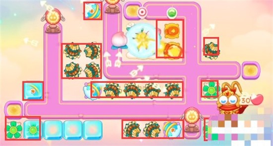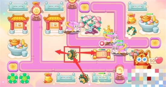 1、本关能够使用的炮塔是:风扇、船锚、多重箭、雪球、火瓶,我们这一关主要使用多重箭和风扇输出。