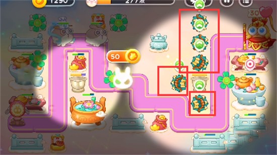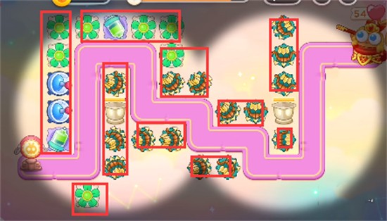4、然后开始向中间种炮塔,将左下角的道具清除,之后清除最左侧的道具,注意没有光的时候给灯充能。