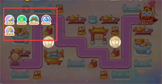 1、这一关我们可以选择的炮塔为毒针、风扇、分裂箭,雷达,闪电炮,这一关的主要输出是风扇+分裂箭+雷达。