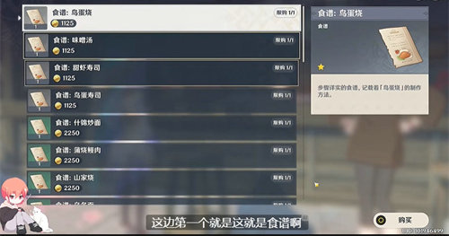 3、我们与他对话购买,第一个就是鸟蛋烧食谱。