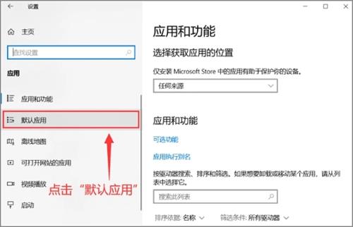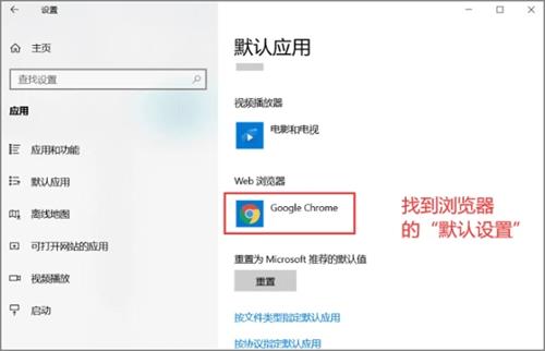 第3步:在“默认应用“中找到浏览器的默认设置即可设置需要锁定的浏览器