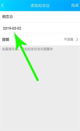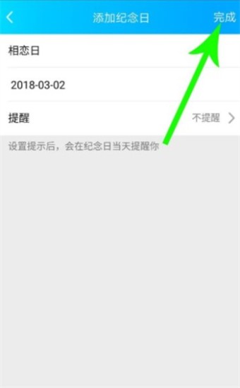 打开弹窗设置新的相恋日,设置完毕点击“确定”,然后点击“完成”保存设置即可。