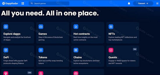 DeFi DApp 追踪: DappRadar 跟踪和监控各种 DeFi dApp,包括去中心化交易所 (DEX)、借贷协议、流动性挖矿平台、去中心化金融聚合器等。