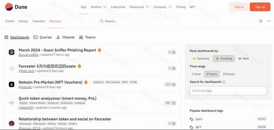 社区驱动的数据共享: Dune Analytics 是一个社区驱动的平台,用户可以在其中与更广泛的 DeFi 社区分享他们的数据查询、可视化和见解。用户可以探索其他用户创建的公共仪表板,发现新的见解,并就数据分析项目进行协作。