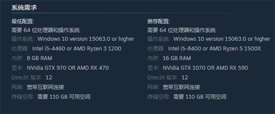 如果电脑配置不满足地平线5最低要求,就会导致游戏闪退或崩溃的情况,请大家检查自己的电脑配置是否满足地平线5的最低配置。需要注意的是系统要是win10,另外必须留足大于110G的空间。