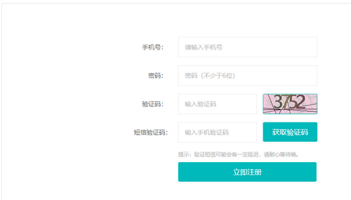 3、点击注册按钮,输入手机号获取短信验证码,输入短信验证码,点击确认注册