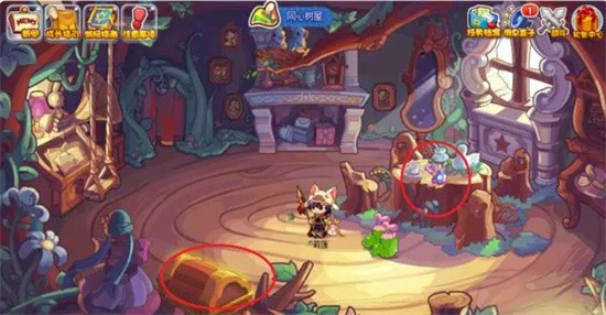 第一个在高黎贡山的同心树屋中,点击宝箱,如何点击桌上的钥匙,将其拖动到宝箱上,木灵石就出现啦!