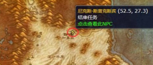 1、玩家在满足前置的要求之后,需要前往加基森坐标(52.5,27.3)的位置,在这里找到尼克斯·斯普克斯宾。
