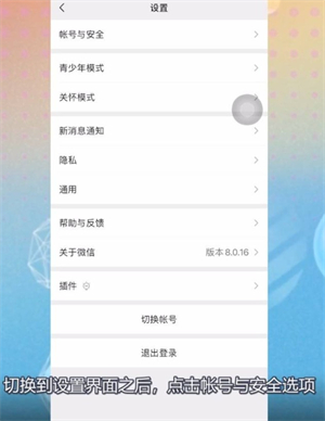 切换到设置界面之后,点击帐号与安全选项,进入之后点击页面里的手机号。