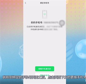 跳转到绑定的手机号页面之后,点击页面下方的更换手机号。
