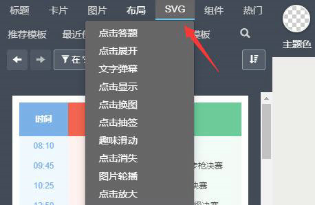 8、SVG之中有各种趣味互动小工具,包括文字弹幕、点击换图、滑动、图片轮播等模板。