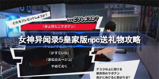 女神异闻录5皇家版礼物怎么送呢,很多玩家在女神异闻录5皇家版中都很喜欢日常的活动任务,但是很多时候玩家不知道怎么通过赠送礼物提高角色的等级,下面就是女神异闻录5皇家版礼物赠送攻略的内容,大家如果想要提升关系等级的话就要积极赠送礼物,并且这样也能增加剧情哦。