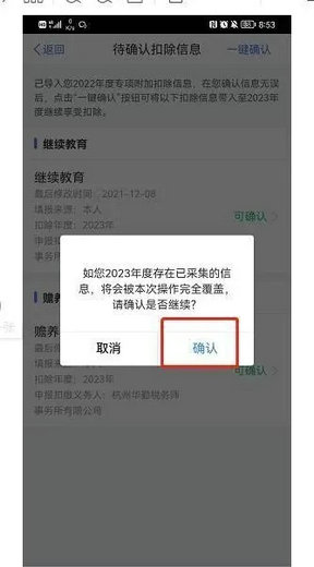 确认完毕,则会显示你2023年度专项附加扣除的信息。