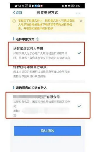 如图,“修改申报方式”主要是选择扣缴义务人申报,一般选择的扣缴义务人为自己所在的公司。