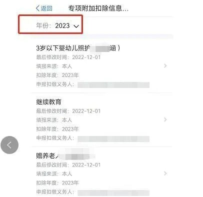 选择2023年度,即可查询你申报的所有专项附加扣除项目。