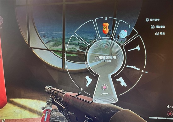 4. 轮盘调出来对着有安装模块的武器就行了。