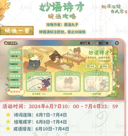 桃源深处有人家妙语诗才怎么玩?桃源深处有人家作为一款休闲经营类游戏,玩家们可以在游戏中参与各种玩法内容的小游戏,这些小游戏每个都有不同的特色,可以为玩家们带来不同的游戏体验,本次小编为玩家们带来的是最新活动妙语诗才中的其中一个小游戏诗词连珠的解答介绍,有还没有通过全部诗词连珠关卡的小伙伴们快来看看接下来的答案攻略分享吧。