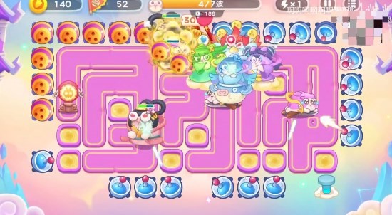 4、之后天神来了再左上角堆满保龄球,其他的按天神的移动路线来放雷达,今天的路中间是放不了炮塔的,所以天神只要贴边走就可以高分,还是有运气的。