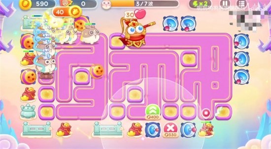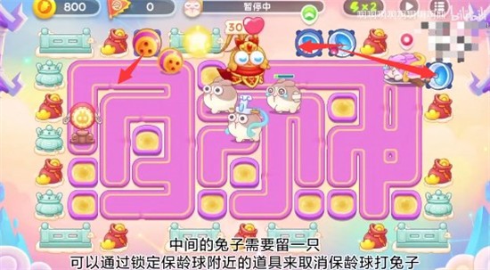 1、这个图放炮塔的位置比较少,开局在右上角放雷达,左上角放保龄球,右侧先打道具,打完旁边的道具放雷达,在右侧一列也放一个,兔子来了要记得锁头;