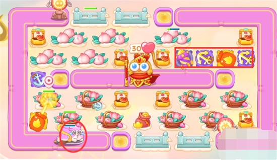 1、本关能够使用的炮塔是:双菱塔、火瓶、船锚、导弹、星星,这一关我们要使用火瓶船锚为主输出。