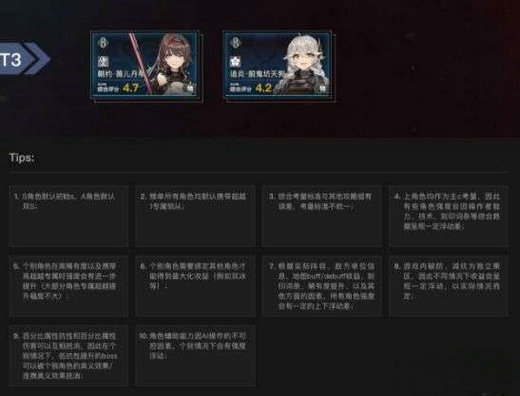 4、以上角色均作为主c考量,因此有些角色强度会因操作者能力、技术、刻印词条等综合数据呈现一定浮动差;