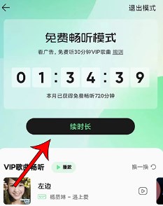 3、一般要求用户观看广告的时长约为15秒左右,观看15秒广告可获得半小时免费听歌权益,用户可以随时续时长