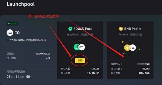 第二步:点击质押选择BNB/FDUSD质押即可