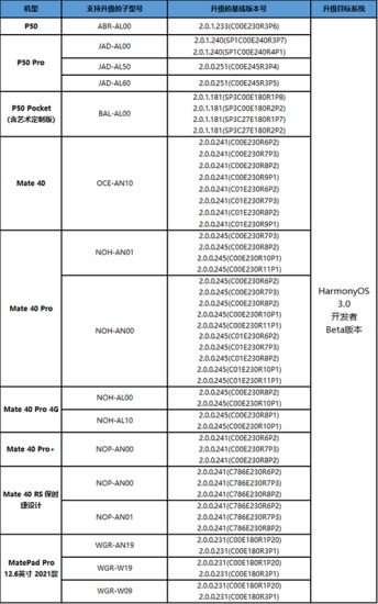 harmonyos3.0支持机型一览: